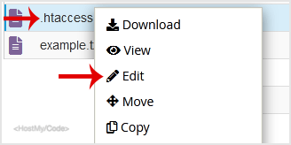 6. Right-click on the .htaccess file and then on Edit in the Context Menu.