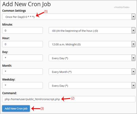 3. Under Add New Cron Job, click on the Common Settings dropdown menu and select an appropriate option such as Once Per Day or another suitable option.