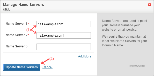 5. Enter the nameservers found in our Welcome Email and click on the Update Name Servers button.