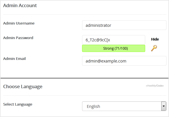 • Admin Email: Your e-mail address.