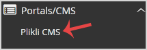 4. On the left side of your screen, you should locate the Portal/CMS category. Click on it and then click on the Plikli CMS link that will appear.