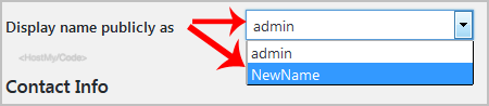 4. In the option Display name publicly as, choose your newly added nickname from the drop-down menu.
